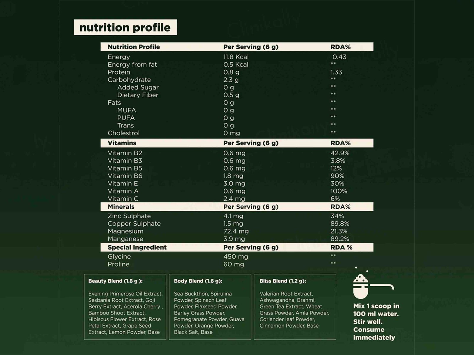 Beautywise Vegan Collagen Builder Powder is a plant-powered blend designed to naturally boost collagen production and enhance skin, hair, and nail health. Free from animal-derived ingredients, this supplement features a synergistic mix of natural extracts and essential nutrients like Biotin, Hyaluronic Acid, Vitamin C, and Sesbania Extract, delivering anti-aging benefits and radiant skin—without compromising your vegan lifestyle.
