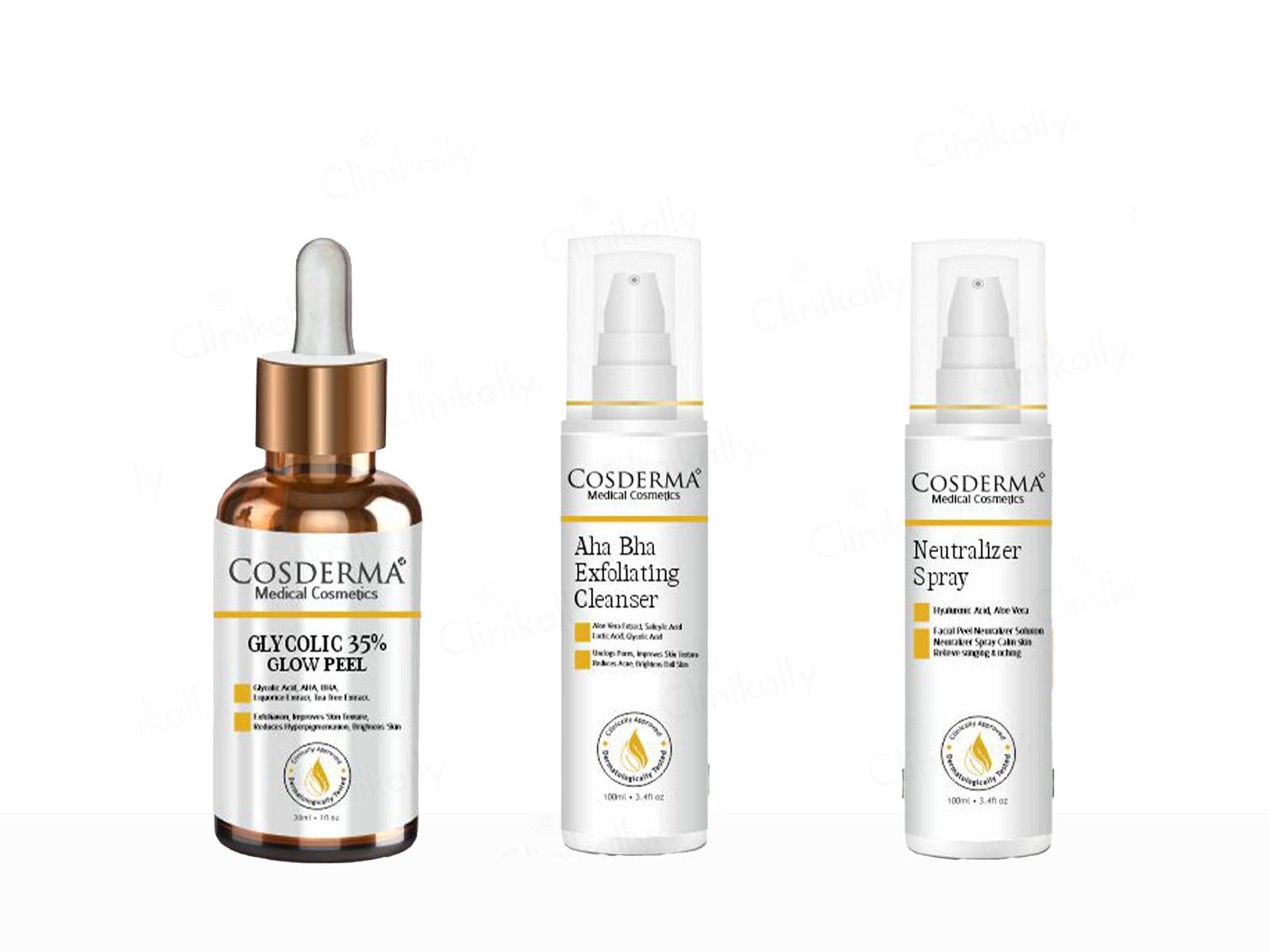 The Cosderma Glycolic 35% Glow Peel Facial Kit is a medium-strength chemical exfoliation treatment, perfect for those seeking noticeable skin improvements without the intensity of higher-strength peels. With 35% glycolic acid, it penetrates effectively to reduce acne scars, lighten pigmentation, smooth fine lines, and refresh dull, uneven skin.