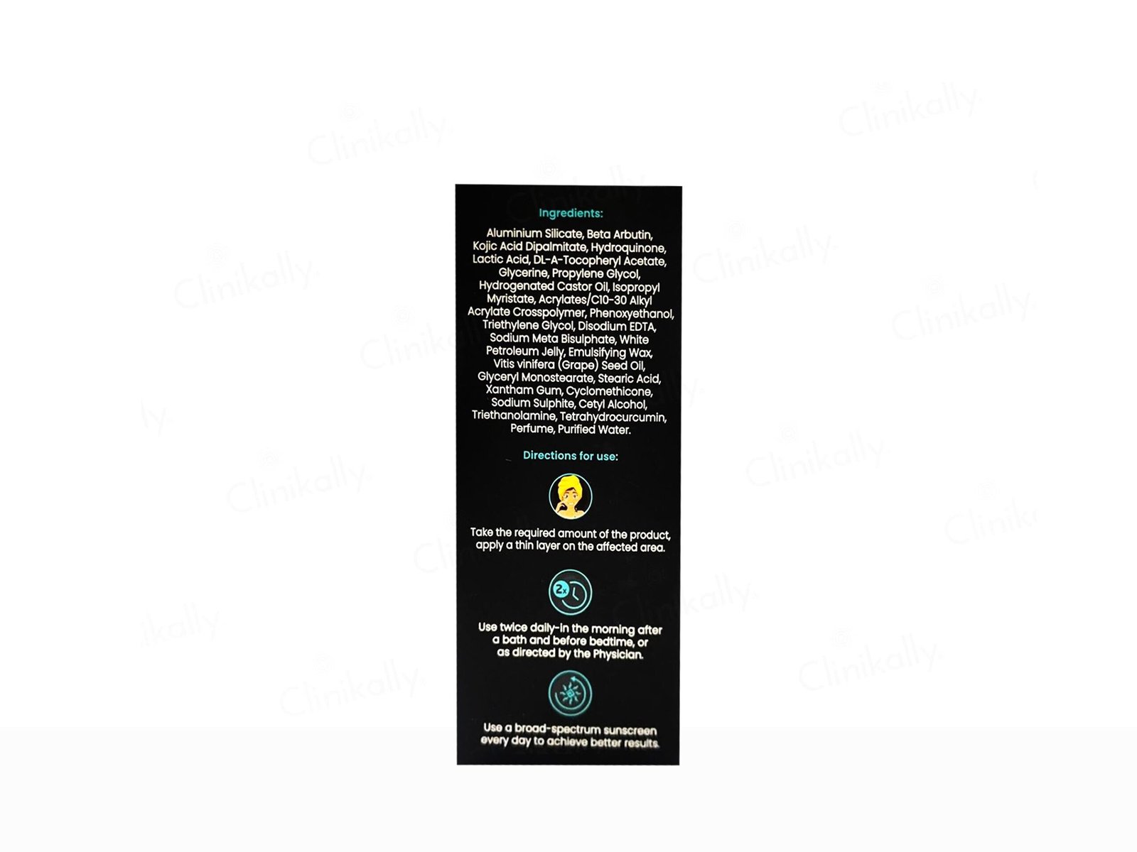 • Hydroquinone – Skin lightening agent that reduces melanin,