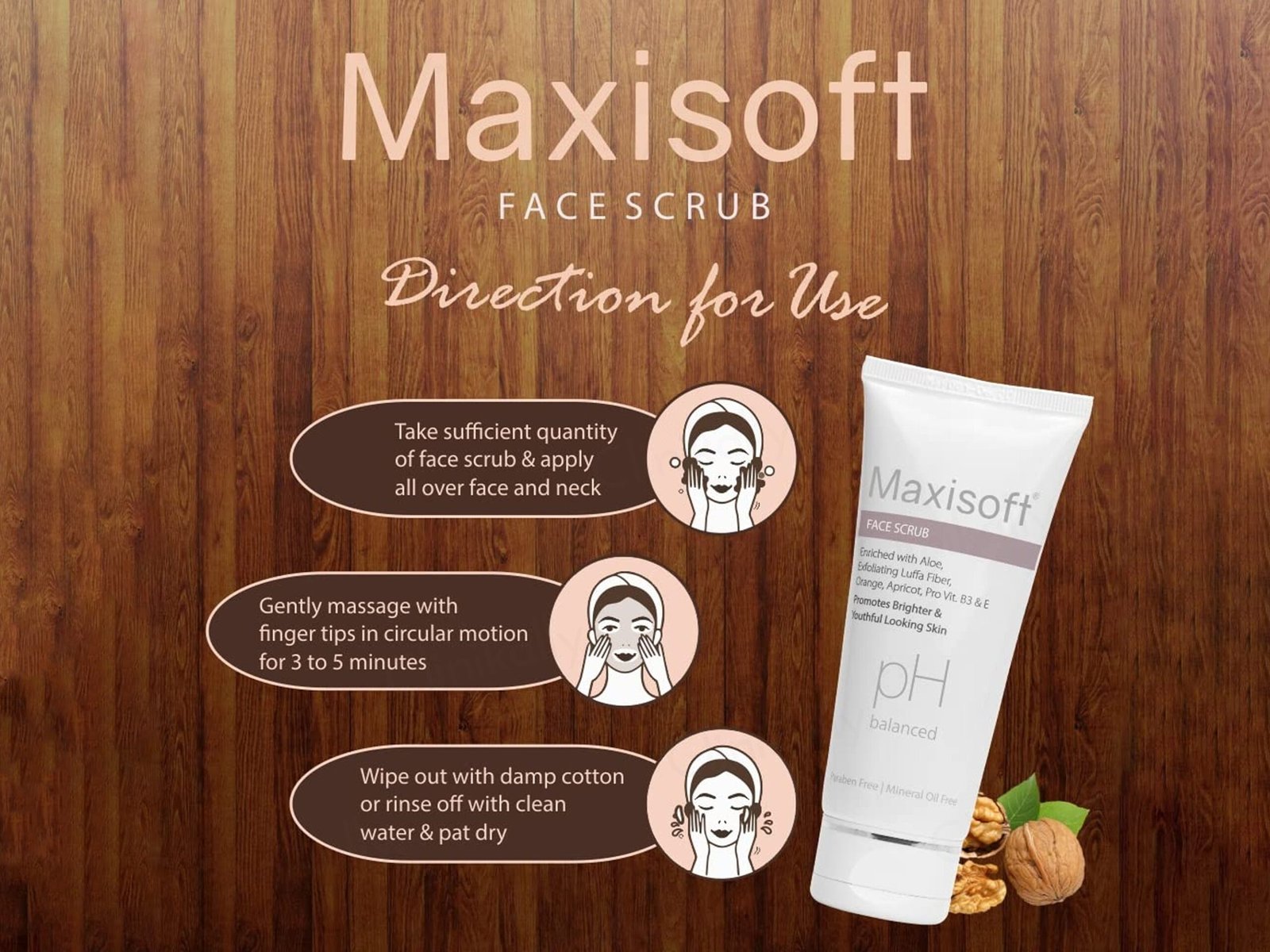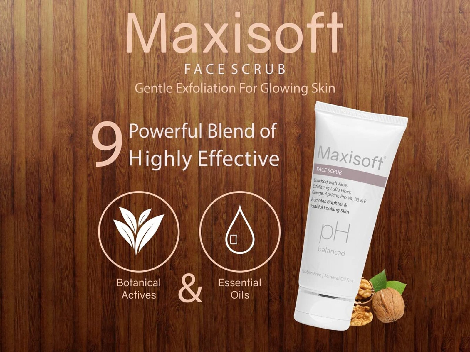 Maxisoft pH Balanced Face Scrub is a dermatologist-tested exfoliating scrub formulated to remove dead skin cells, dirt, and excess oil while keeping the skin’s natural pH intact. It helps improve skin texture, unclog pores, and promote a healthy, radiant complexion without causing dryness or irritation.